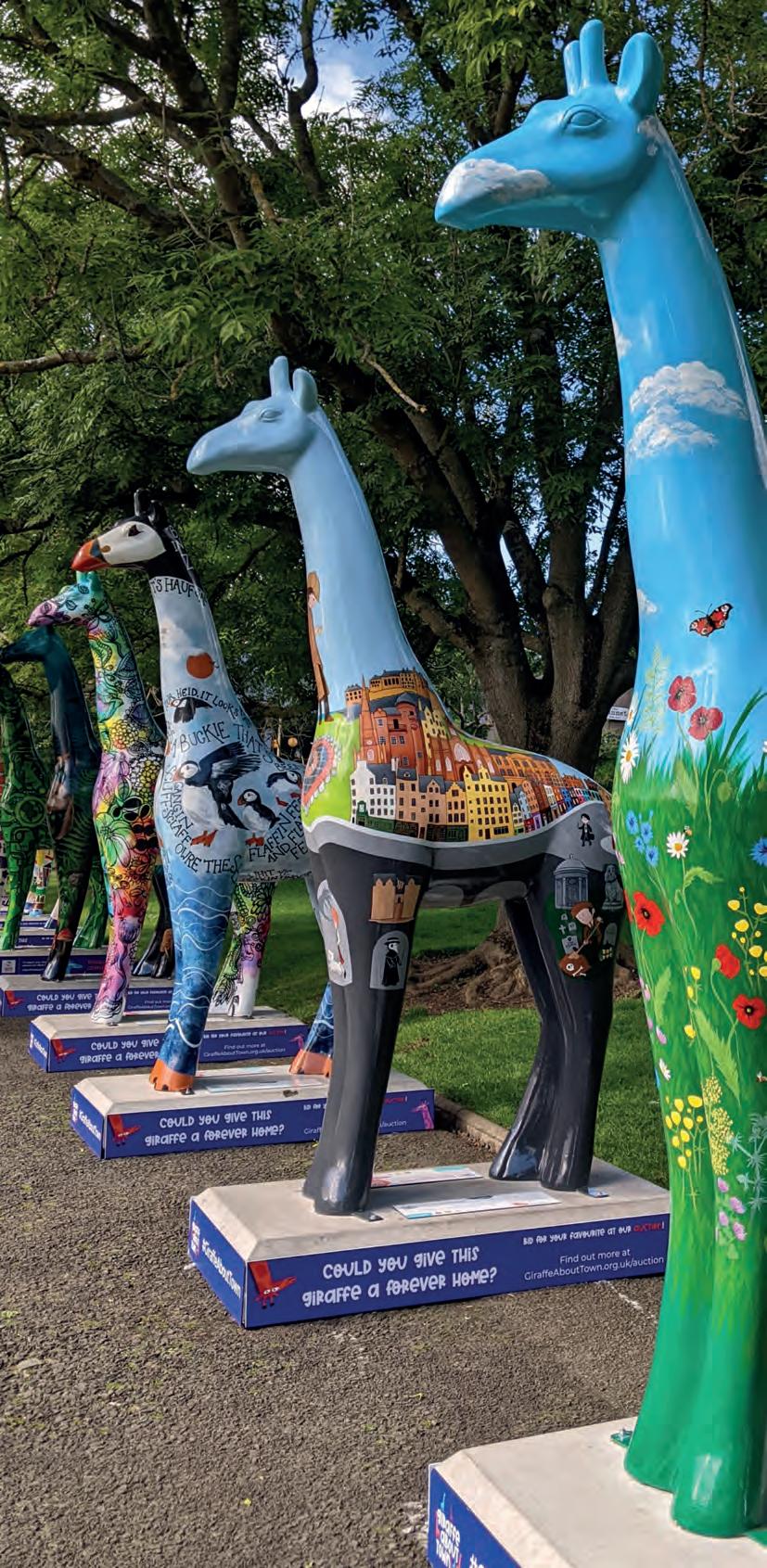 0ur Giraffe About Town event took Edinburgh by storm in July and August. 42 tall giraffes led a trail highlighting some of the wonderful sights of the city, and 32 wee giraffes, decorated by schools and community groups, formed a 'wee trail' in libraries and city centre business windows.