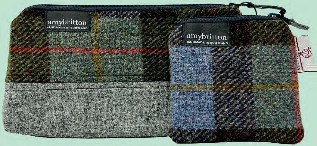 0 Individually or as a set, this lovely coin purse (£17) and wash bag (£30) from Amy Britton make wonderful presents. Handmade from worldfamous Harris tweed, both come fully lined with a zip closure. G!