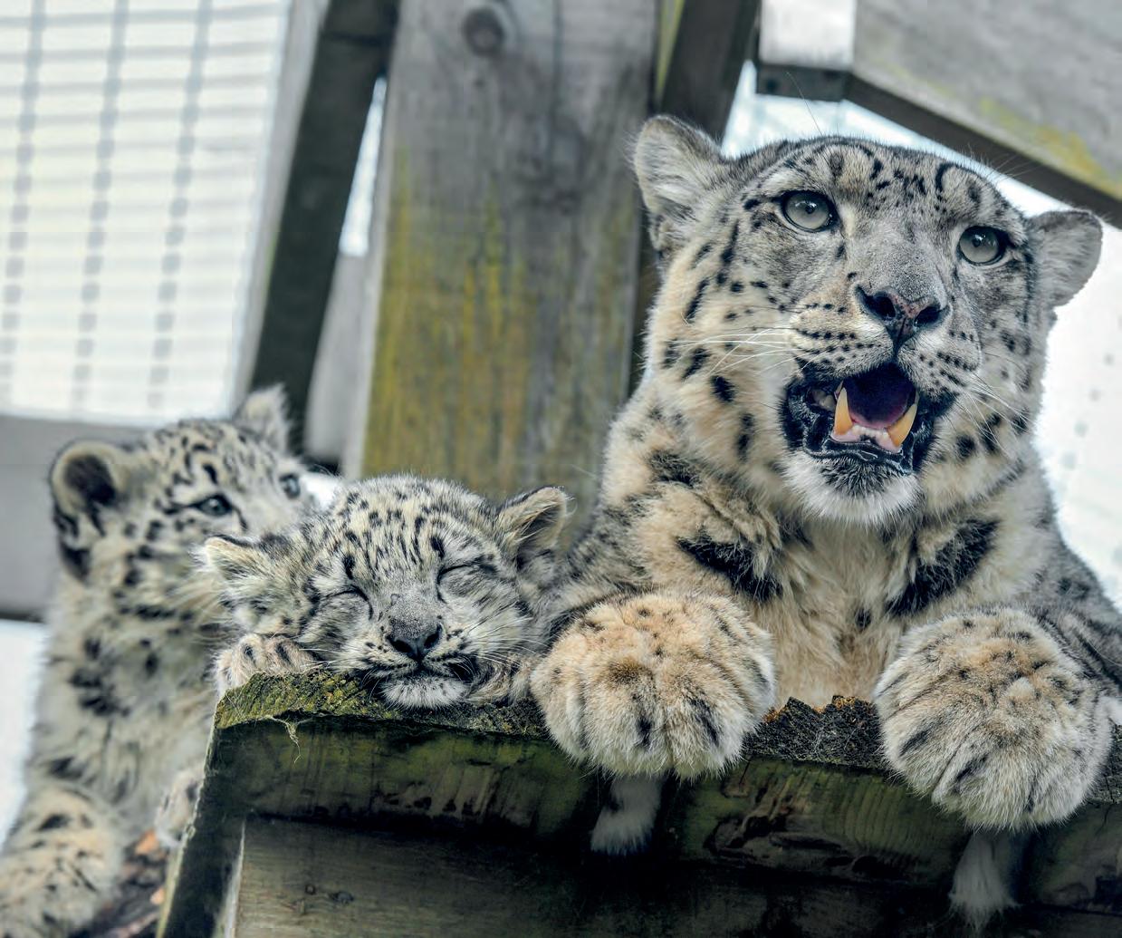 Our snow leopards at Highland Wildlife Park had three cubs this year: Padme, Maya and Yashin. Read more about the cubs on page 18. Photography by Laurie Campbell.