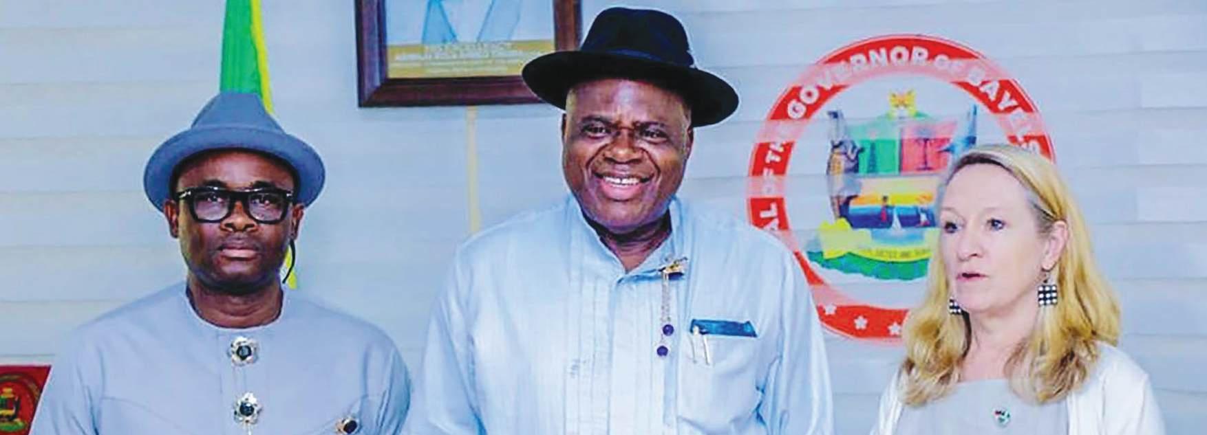 Lagos State Governor Babajide Sanwo-Olu shaking hands with Commonwealth Enterprise and Industrial Council (CWEIC) CEO Mrs Samantha Cohen at the signing of an MoU on “Invest in Lagos 3.0” With them are (from left) former Attorney General and Commissioner for Justice Supo Shasore SAN, Commissioner for Commerce, Cooperatives, Trade and Investment Mrs Folashade Bada- Ambrose and Commissioner for Information and Strategy Gbenga Omotoso at the State House,
