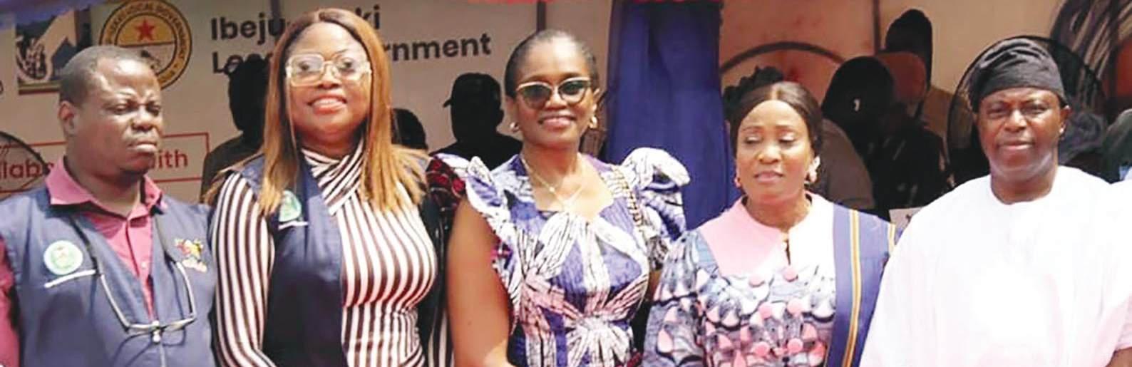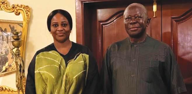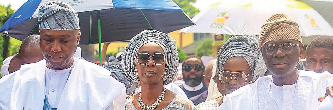 L-R: The deceased’s son-in-law, former President of the Senate, Senator Bukola Saraki; his wife, Erelu Toyin Saraki (née Ojora) and Governor of Lagos State, Mr. Babajide Sanwo-Olu, at the burial of the Lisa of Ife, Otunba Adekunle Ojora, in Ikoyi, Lagos, yesterday