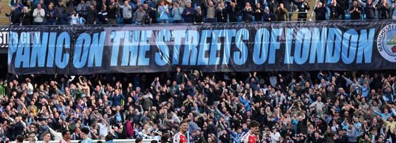 PANIC ON THE STREETS OF LONDON... This is the massive banner rolled out by Manchester City’s fans shortly after the North London team lost 2-1 at Etihad to narrow their lead from nine points to just three points. City have a game at hand on Wednesday and a win may prove catastrophic to the Gunners dream of lifting the Premier League trophy