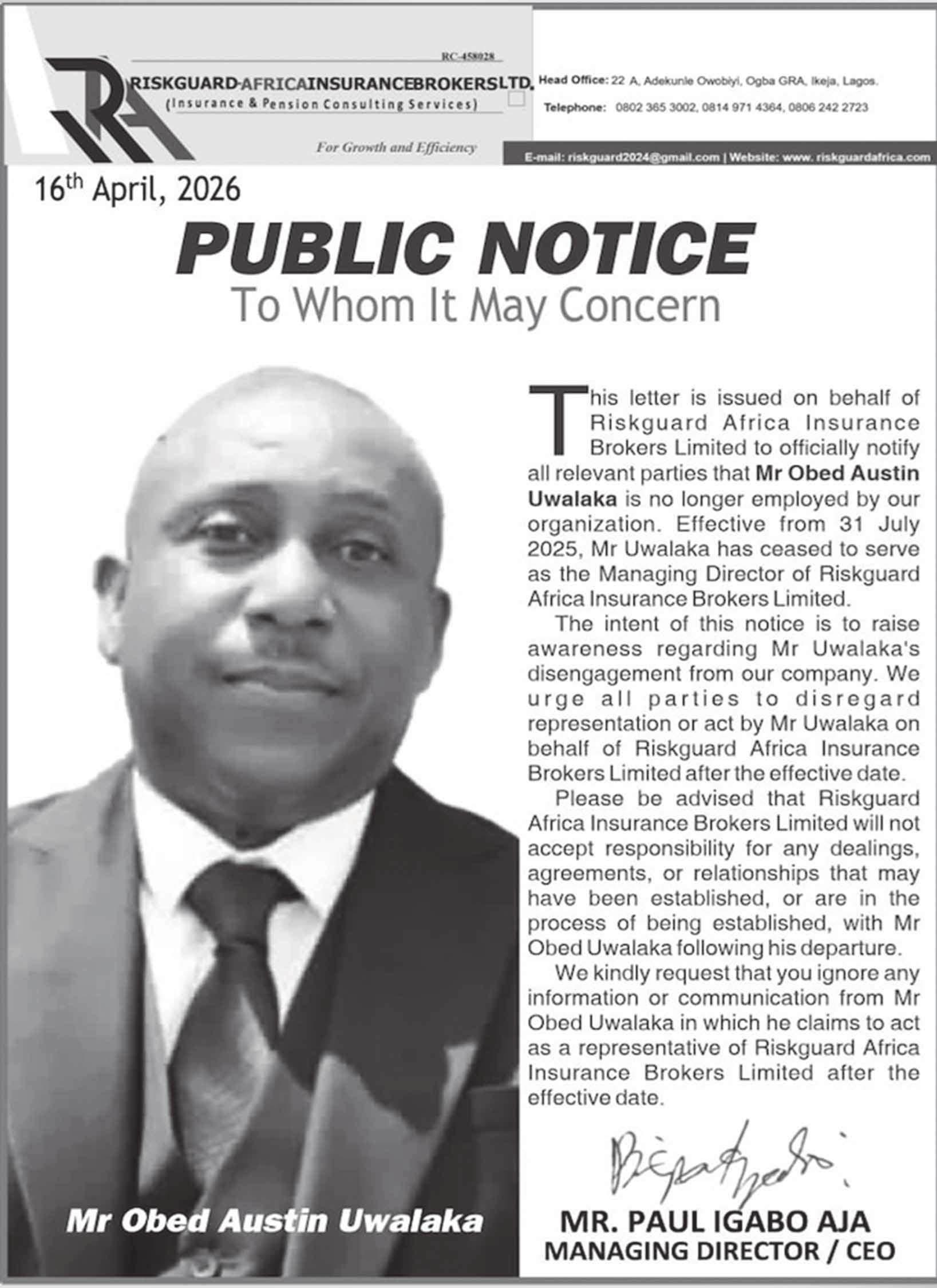 He noted that Galadima’s