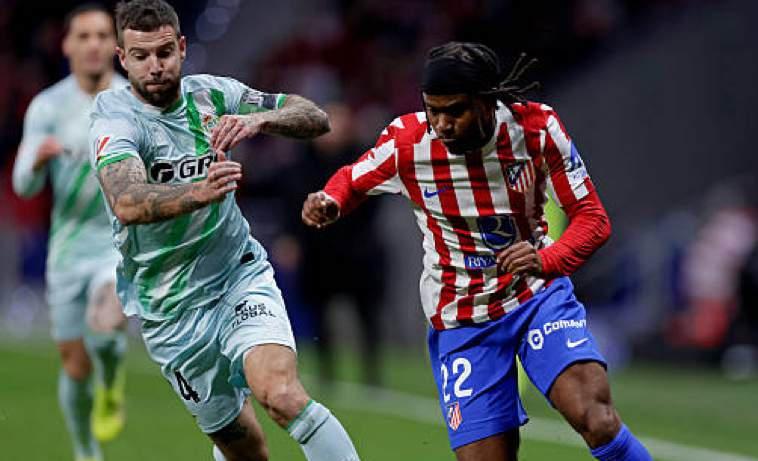 Ademola Lookman (right) in a one-on-one with Betis’ Aitor Ruibal during the Spanish La Liga clash at Estadio Metropolitano in Madrid...on Sunday evening