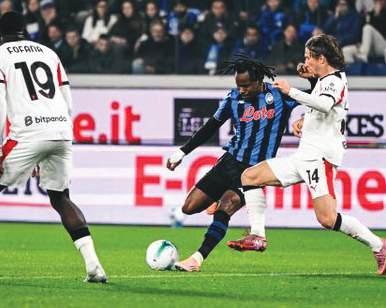 AC milan luca modric tries to prevent Ademola lookman from taking a shot during a Serie A encounter