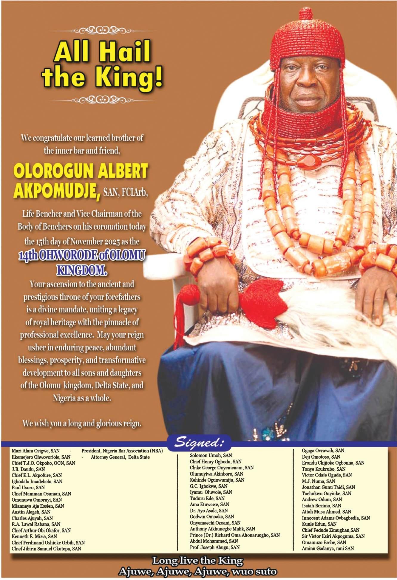 Among the array of eminent Nigerians expected at the Grand Finale will be the Chief Host and newly crowned King of Ancient Olomu Kingdom, HRMAlbertAkpomudje, SAN.