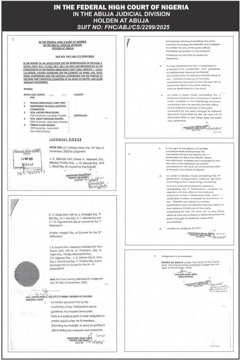 According to the judge, the aspirant was a bonafide member of the party and had every legal rights to apply for any elective office in the PDP.