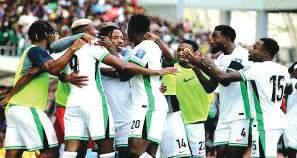 Super eagles players celebrating their 4-1 victory against Gabon on Thursday