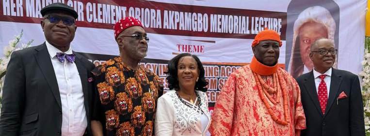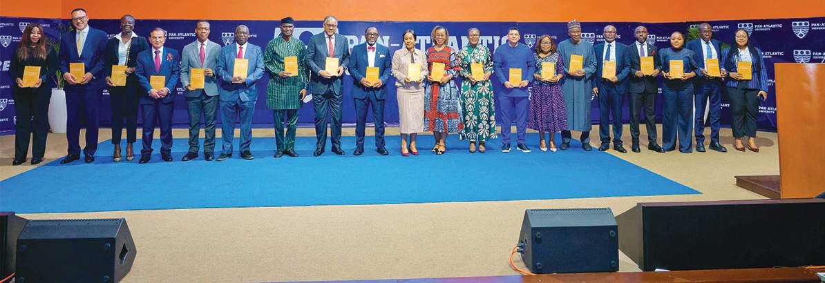 L-R: Founding Director, Centre for Housing and Sustainable Studies, University of Lagos, Professor Gbenga Nubi; Founding Partner of Future Africa, Mr. Iyinoluwa Aboyeji; Founding Executive Director, Enough is Enough Nigeria, Ms. Opeyemi Adamolekun; the celebrant and Senior Pastor, Trinity House, Pastor Ituah Ighodalo; representative of the Keynote Speaker, Chief Olusegun Obasanjo/Deputy CEO, Olusegun Obasanjo Leadership Institute, Professor Adedeji Daramola; Professor of Economics and Data Analytics, Lagos Business School, Pan-Atlantic University, Professor Bongo Adi; Senior Strategic Consultant for UN System Engagement in North-west Nigeria, Mrs. Maryam Uwais; and Director General, Nigerian Institute of International Affairs, Professor Egosa Osaghae, during the sixth Annual Colloquium in honour of Pastor Ighodalo on the occasion of his 65th birthday in Lagos…Friday
