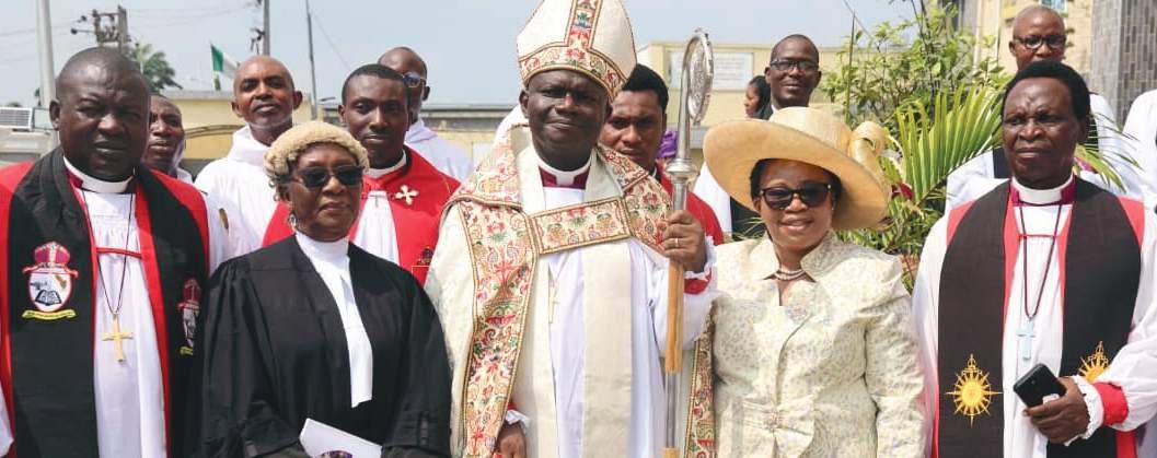 L-R: Bishop of Kwoi Anglican Diocese, Rt. Rev Paul Zamani; Chancellor of the Lagos Southwest Diocese, Mrs. Modupe Akinwande; Bishop of Lagos Southwest Diocese, Rt. Rev Ebenezer Ajayi Adewole, and his wife, Mercy, during the inauguration of the Lagos Southwest Anglican Diocese in Festac Town, Lagos…recently.