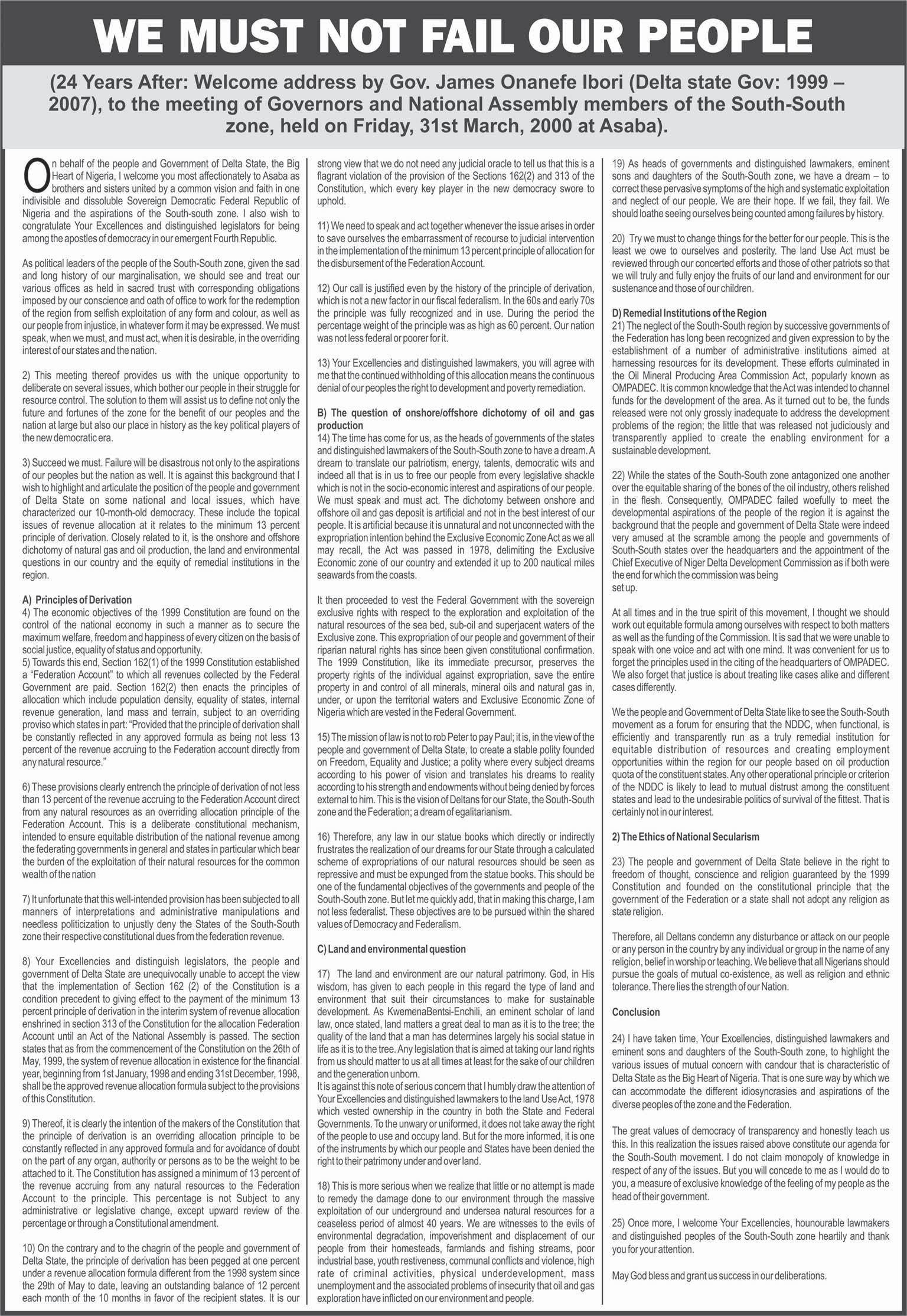 “We would change the relational mindset between the states and Abuja - the fulcrum would be the states, while the centre would support them, not lord over them.