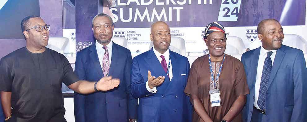 LEADERSHIP SUMMIT… L-R: Regional Partner, Ernst and Young West Africa, Mr. Anthony Oputa; Group Chief Financial Officer, Ecobank Transnational Incorporated, Mr. Ayo Adepoju; Academic Director/Group Chief Executive Officer, Africa Programme, Lagos Business School, Mr. Patrick Akinwuntan; former Group Chief Executive Officer, Ecobank Transnational Incorporated, Mr. Ade Ayeyemi; and Managing Partner, Verraki Partners, Niyi Yusuf, at the 2024 Lagos Business School Chief Financial Officer Leadership Summit in Lagos…recently. SUNDAY ADIGUN