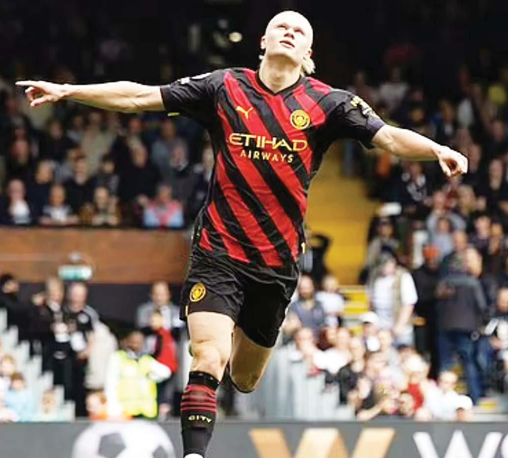 Erling Haaland celebrating scoring his 50th goal of the season in all competition for Manchester City...last night