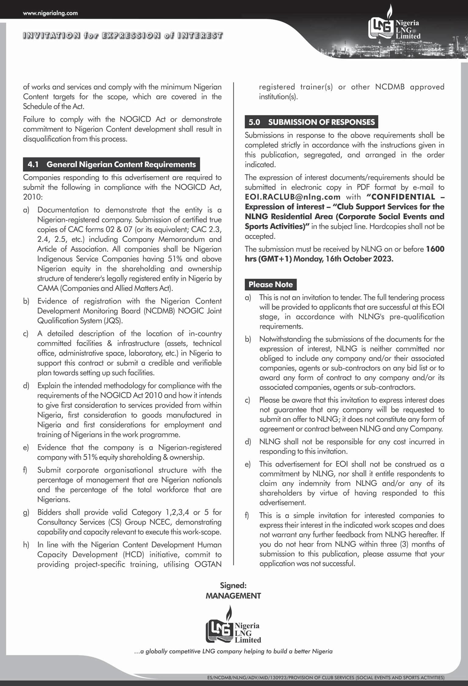 DIALOGUE WITH NIGERIA