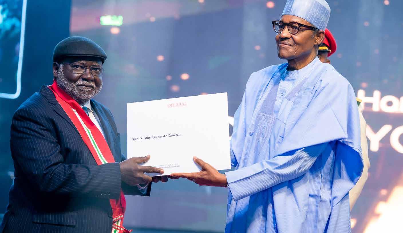 Speaking at the event, President Muhammadu Buhari commended the National Awards Committee headed by Justice Sidi Bage Muhammad, a retired Justice of the Supreme Court, the Emir of Lafia, for a great and patriotic duty by diligently going through over 5,000 submissions and coming up with these recommendations.