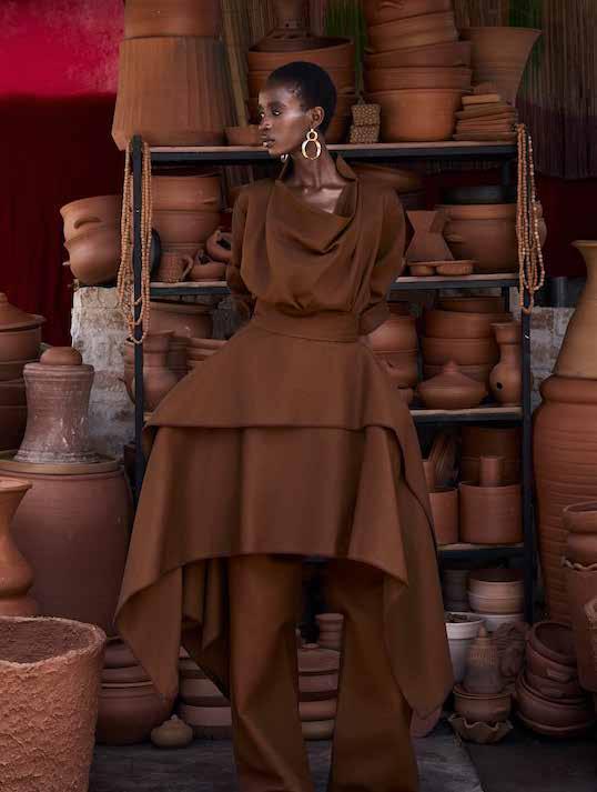 HERTUNBA continues its engagement with indigenous West African craft techniques, though these references are integrated into the making of the garments rather than presented as overt design features. The influence of disciplines such as weaving, ceramics, and painting can be observed in the handling of fabric and the development of form, but they remain understated within the final outcome.