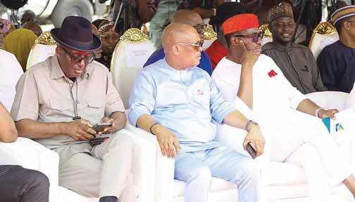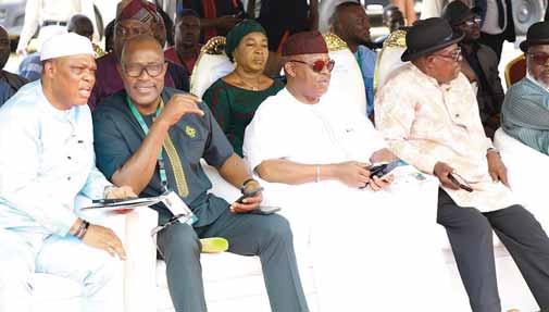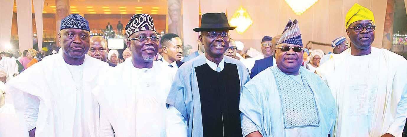 L-R: Southwest Governors, Mr. Biodun Oyebanji (Ekiti); Mr. Lucky Aiyedatiwa (Ondo); the celebrant, Mr. Babajide