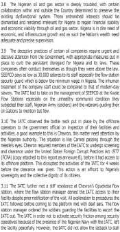 portunity to change Nigeria’s energy sector and ensure efficiency. More than 17 years after Southern Bakassi was handed over to Cameroon, the joint mixed commission has not resolved the maritime boundary demarcation between Nigeria and Cameroon. There are ungoverned spaces on the high seas between both countries, which have now become a playing field for illegal drilling, and oil theft. Pi-rates from as far away as China and Somalia are operating freely in the Gulf of Guinea and Nigerian waters, stealing profits and resources that are meant for the country. These oil thieves probably have Nigerian collabora-tors, collecting rent on our behalf. The Federal Government is looking for revenue, and yet we have oil wells that are being compromised. The subject therefore goes beyond the dispute between two states. Nigeria can benefit more by learning to manage its resources below and above the sea, more efficiently.