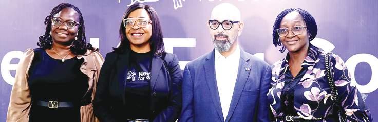 L-R: Sitting: H.E. Francisca Tatchouop Belobe, Commissioner for Economic Development, Trade, Tourism, Industry and Minerals, African Union Commission; Dr. George Elombi, President and Chairman of the Board of Directors of Afreximbank; Dr. Jumoke Oduwole, Minister for Industry, Trade and Investment; and Cynthia Gnassingbe, Director, Partnerships and Private Sector, AfCFTA.