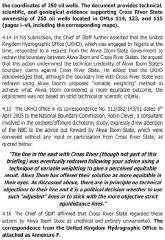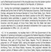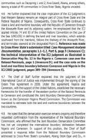 with the Republic of Cameroon, and the Nigerian Supreme Court has said so twice to establish this fact.” Governor Eno advises his brothers in Cross River State to avoid emotions, sentiments and propaganda. Meanwhile, Governor Bassey Otu of Cross River state argues that Akwa Ibom has no boundary with Cameroon, it is in fact 28 nautical miles away from the coast, and that based on new mapping, and coordinates, Cross River is indeed a littoral state, the only navigational entry into Nigeria is through the Calabar estuary, and that the 200 metres isobath, as well as the outward seabound extension of the Continental shelf is in Cross River State. To say otherwise is to turn Cross River into a landlocked state which it is not. The government of Cross River state insists that the Supreme Court was misled because the ICJ never said Cross Rivers is not a littoral state, nor does the Green Tree agreement so indicate. Besides, in mapping out actual boundary line of the territories belonging to Nigeria in August 2008, the National Boundary Commission applied a “Technical Option” instead of the “Historic Title Option” and awarded the 76 oil wells in Western Bakassi to Akwa Ibom in error.
