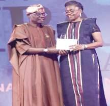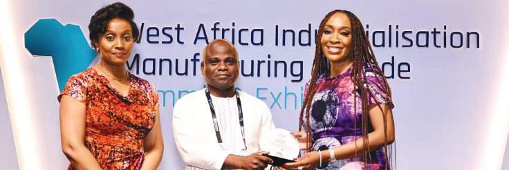 TEBE, presenting the Woman of the Year Award to the Chief Operating Officer, Nigeria Machine Tools Limited, Mrs. Obehi Ojeaga, in recognition of her exceptional leadership which has significantly impacted West Africa Industrialisation, Manufacturing and Trade at the gala night and award of the West Africa Industrialisation, Manufacturing and Trade Summit 2026, held at the Landmark Event Centre in Lagos … recently