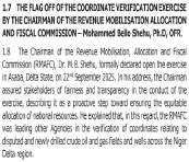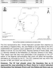 and disputed oil wells. Where is the report of the inter-agency committee of the NUPRC, the office of the Surveyor-General and the National Bounda-ry Commission put together by RMAFC? Coordinates do not lie. Where are the coordinates? Which state owns what? And where? What is the truth? Where is the maritime boundary of Cross River state? Cross River alleges that the oil wells in OML 114 and OML 123 oil fields – 67 in total are within its boundary, based on the Nation’s Administrative Map 11th edition and the 2004 well dichotomy study map. Ultimately the matter would have to go back to the Supreme Court and both parties should have an open mind. In the face of fresh facts and information, the Supreme Court can arrive at a different conclusion but let it be on record that justice is done. Only the Su-preme Court has the power to overrule itself.