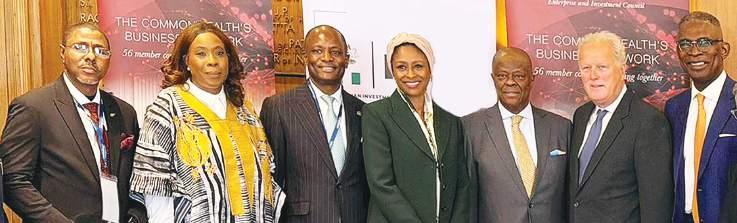 L-R: Chief Executive Officer, Central Securities Clearing System Plc (CSCS), Mr. Shehu Shantali; Lagos State Commissioner for Commerce, Cooperatives, Trade and Investment, Mrs. Folashade Bada Ambrose; Group Managing Director/CEO, Nigerian Exchange Group, Mr. Temi Popoola; Executive Secretary and Chief Executive Officer of the Nigerian Investment Promotion Commission (NIPC), Ms. Aisha Rimi; Minister of Finance and Coordinating Minister of the Economy of Nigeria, Mr. Wale Edun; Chairman of the Commonwealth Enterprise and Investment Council, Lord Marland; and Country Chair, Nigeria, Commonwealth Enterprise and Investment Council, Mr. Olasupo Shasore, SAN, at the Nigerian United Kingdom Investment Roundtable organised by NIPC in London, yesterday