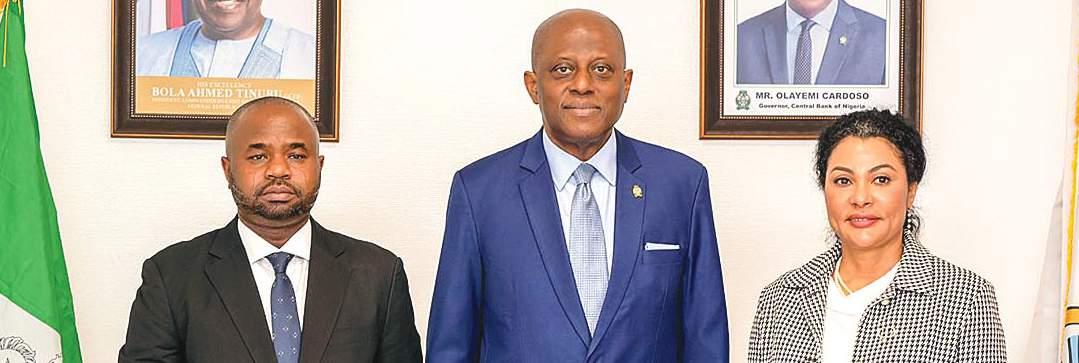 L-R: Chairman, Nigerian Revenue Service, Dr. Zacch Adedeji; Governor of the Central Bank of Nigeria (CBN), Mr. Olayemi Cardoso, and Minister of State for Finance, Dr. Doris Uzoka- Anite, during a working visit by the Minister and Adedeji, reinforcing Fiscal and Monetary collaboration for national development, in Abuja…yesterday