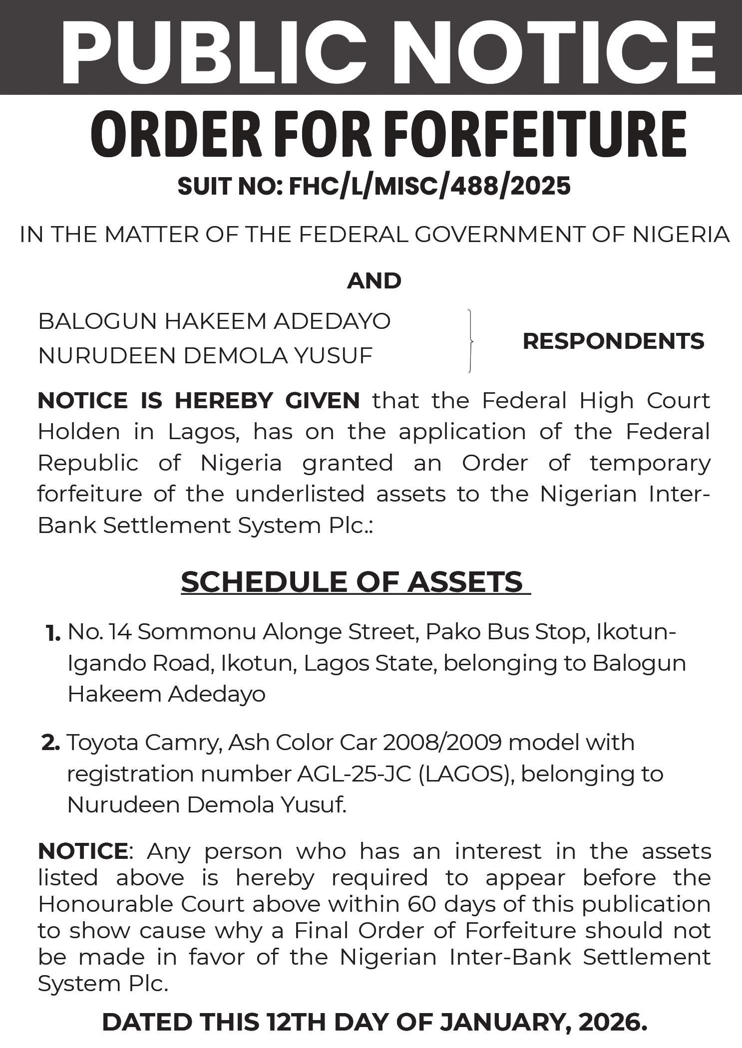 In a public notice, LIRS stated that NTAA 2025 empowered it to “direct any person holding money on behalf of, or owing money to, a