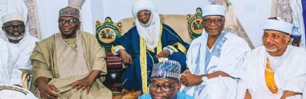 L-R: APC Chieftain Amb. Yahaya Seriki; Governor AbdulRahman AbdulRazaq, CON; Senator Suleiman Sadiq Umar (Kwara North); Emir of Ilorin Dr. Ibrahim Sulu-Gambari CFR; Mutawali of Ilorin Dr. Alimi AbdulRazaq; and Senator Saliu Mustapha (Kwara Central); paying homage to the Emir after a special prayer for the late Chief Imam of Ilorin Sheikh Muhammad Bashir Imam Solih; on Sunday in Ilorin.