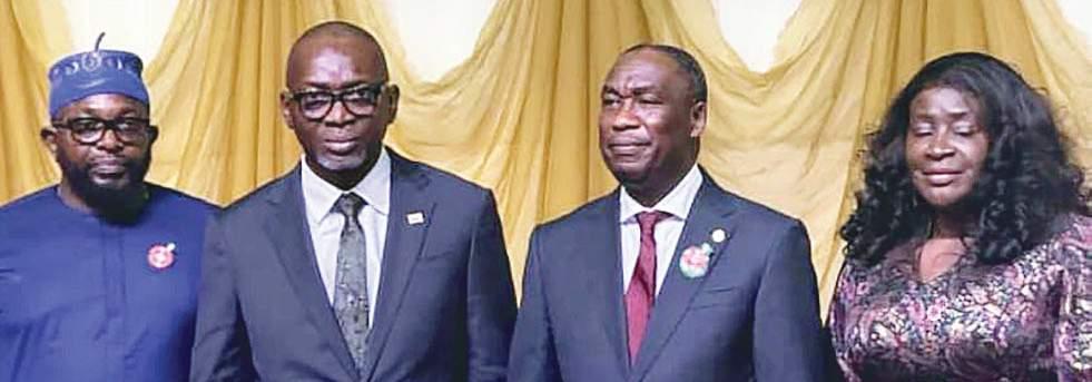 L-R: CEO, Financial Derivatives Company Limited. Mr. Bismarck Rewane; pastor in charge of the Redeemed Christian Church of God, Lagos Province 35 (RCCGLP 35), Dr Ben Akabueze; Hon. Minister of State for Industry, Federal Ministry of Industry,Trade, and Investment, Senator John Enoh; Tax Partner, KPMG West Africa, Ms. Elizabeth Olaghere; CEO, Centre for the Promo Mrs. Ini John-Mekwa; Chief Executive Officer, Centre for the Promotion of Private Enterprise, Dr. Muda Yusuf; Senior Business Correspondent, Channels Television, Mrs. Ini John-Mekwa; and Assistant Pastor in Charge, RCCG Lagos Province 35/Chairman, Empowerment Committee, Emeka Obiagwu at the 2026 Economic outlook: Navigating Tax Reforms and Investment opportunities organized by RCCG Lagos province 35 held in Lagos ..Friday