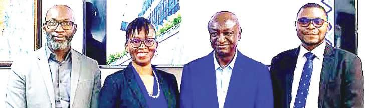 L-R: MD/CEO, Tafawa Balewa Square Management Board, Lucia Shittu; GMD/CEO, Nigerian Exchange Group (NGX Group), Temi Popoola; Group Chairman, NGX Group, Umaru Kwairanga; Minister of Industry, Trade and Investment, Dr. Jumoke Oduwole; Chairman, Nigerian Exchange Limited (NGX), Ahonsi Unuigbe; and CEO, NGX, Jude Chiemeka, at the closing gong ceremony in honour of the minister, at the NGX Group House, Lagos, yesterday