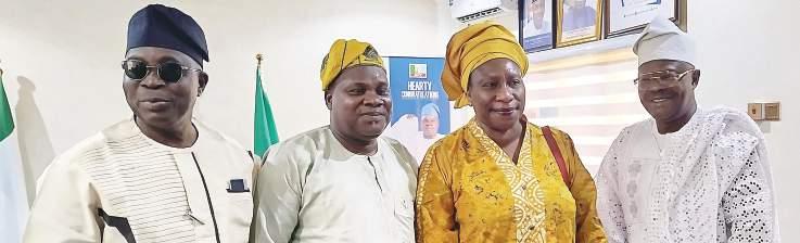 L-R: Former Coordinator, World Bank/ Member, Support Group for IYABO, Mr. Oluwatiyin Jokosenumi; Director, Administration, APC, Mr. Ayoola Peter Olajolo; Ogun State, APC, Governorship Aspirant, Senator Iyabo Obasanjo and Deputy Director General, South West, APC Support Group, Amb. Adewale Adewumi, during the Aspirant awareness visit to the APC national headquarters in Abuja ... yesterday