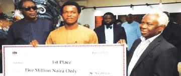 L–R: Global Vice President, Dettol, Mr. Loannis Dostas; Founder, Geotek Water Solutions Ltd., Mr. Ichor Joshua; and General Manager, Reckitt Sub-Saharan Africa, Mr. Akbar Ali Shah, during the presentation of ₦12 million seed funding cheque to social and health innovators tackling W.A.S.H (Water, Sanitation and Health) and Sexual Reproductive Health (S.R.H) challenges at the recently concluded Reckitt Access Accelerator Programme in Lagos