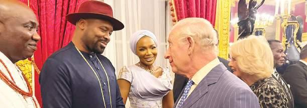 Oluyemi of Warri Kingdom, Chief Samuel Amatotsero; His Majesty Ogiame Atuwatse III, CFR, the Olu of Warri Kingdom; Queen Consort of Warri Kingdom, Olori Atuwatse III and Head of Commonwealth of Nations, His Majesty, King Charles III of United Kingdom during Commonwealth Day Celebrations in London … yesterday