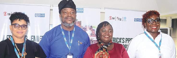 L-R: Divisional Head, Personal Banking, FCMB, Mr. Adetunji Lamidi; Competition winner, Adebayo Oluwaloni; Group Head, Consumer Liability, FCMB, Mr. Abubakar Etamesor; and Federal Competition and Consumer Protection Commission official, Mr. Nasiru Olajide, at the grand finale of FCMB’s National Essay and Drawing Competition for pupils and students aged 3–17 in Lagos…recently