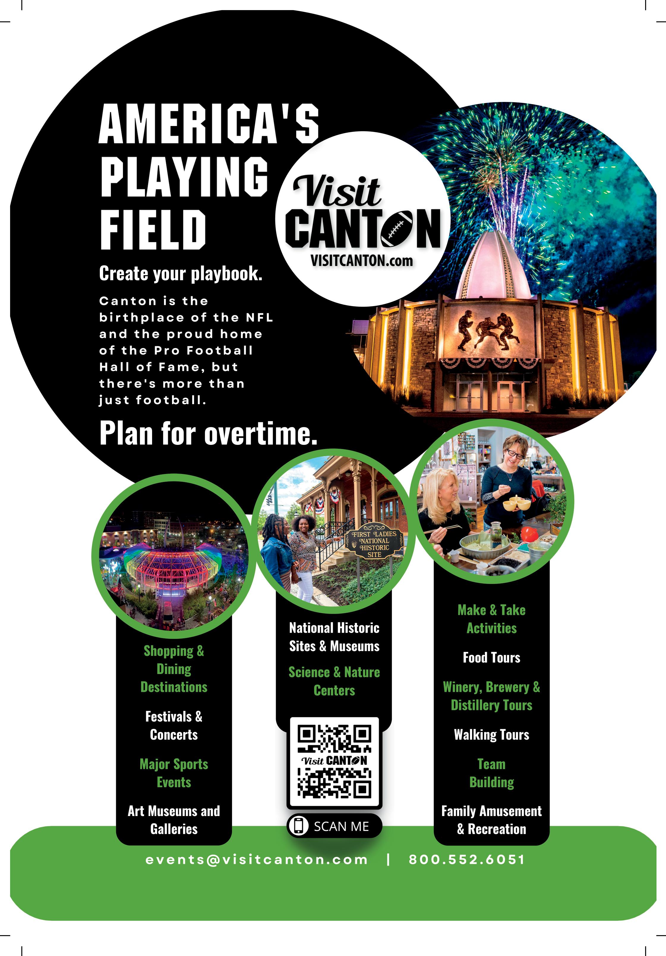 NORTHEAST OHIO’S STEM HQ Plan your group visit today! • Hundreds of hands-on exhibits • Live Science Shows • NASA Glenn Visitor Center • Immersive, giant-screen Cleveland Clinic DOME Theater • Discounts for groups of 10 or more Visit GreatScience.com/Groups or call 216-621-2400 for more information WHERE MAGIC STRIKES PINSTRIPES IS A COLLECTION OF 13 VENUES ACROSS 9 STATES THAT UNIQUELY COMBINE FROM-SCRATCH ITALIAN-AMERICAN CUISINE WITH BOWLING, BOCCE AND MEMORABLE PRIVATE EVENTS. OUR BEACHWOOD, OHIO LOCATION CAN HOST GROUPS SIZES FROM 20 - 1,000 IN OUR PRIVATE EVENT SPACES OR ON OUR BOWLING LANES OR BOCCE COURTS. NATIONALSALES@PINSTRIPES.COM · 281.608.2604 · PINSTRIPES.COM WE'RE HERE TO MAKE IT EASY TOUR GROUP ALL-INCLUSIVE PACKAGE PRICING | CONVENIENT PARKING | TRANSPORTATION PACKAGES AVAILABLE