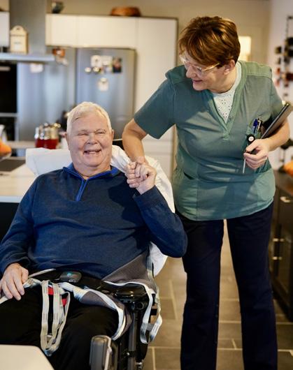 Det er først på dagen, og sosu-assistent Susanne Maarupgaard Pedersen er på dagens første besøg hos ægteparret i hjemmet i Thisted. Stemningen er glad. Morten er kommet i tøjet og op at sidde i sin elektriske kørestol. Barbermaskinen har været i gang, og nu er der kaffe i krusene på køkkenbordet. Morten Lynge og hustruen Kirsten er meget enige om, at de fire daglige besøg fra hjemmeplejen er årsagen til, at de fortsat kan bo sammen som ægtefolk i eget hjem.