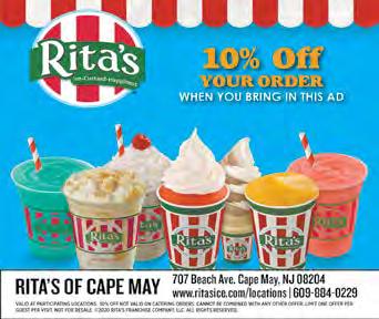 502 SUNSET BLVD. CAPE MAY POINT (609) 884-7079 SUNSETBEACHNJ.COM A “Must Visit” When in Cape May! GIFT SHOPS MINI GOLF GRILLE