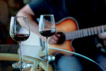 Vineyard bar seating first-come, first-served. Scan for live music schedule.