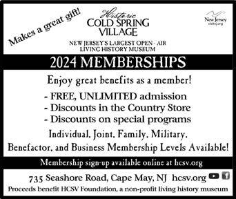 Be sure to visit the Carriage House at the Physick Estate, too, where you’ll find the CARRIAGE HOUSE MUSEUM SHOP (see pages 69 and 72) with some unique treasures for giving (or keeping!) as well as the current exhibit in the CARROLL GALLERY, “Line in the Sand: Segregated Beaches in Cape May & Atlantic City.” Co-sponsored by Cape May’s Center for Community Arts. (see page 33).