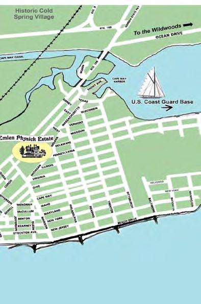 Look and listen as your guide takes you back in time while your trolley travels through Cape May’s Historic District. Your time travel continues with a visit to the 1879 Emlen Physick Estate,(see page 6) Cape May’s only Victorian house museum, 1048 Washington St. (90-minute tour).