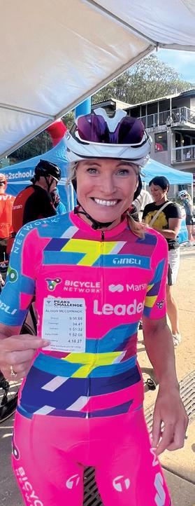 "Our Peaks Legends have so far raised over $40,000 for Ride2School - a massive win for making active transport more accessible and building healthy habits in the next generation." Over the years many locals have ridden the event. Names like Bernie McArdle, Andy Mero, Justin Hanlon, Tina Cook, Mitch Cook and Larry Franklin are just a few that come to mind. Then later we have Brian Peacock from Rocky Valley Bikes and Meredith Iaria; Ron Gallagher; Mandy Bland; Atilla Kerestes; Shaun Power (having done if five or six times) Kevin Bradley, Iain Morrison and more recently Lyn Landry and Alex Smit. The good news is that several of these names are back in the saddle for this year’s event. Lyn Landry, Shaun Power, Justin Hanlon and our running athlete Nicole (Nik Nok) McKilliam –see article Page Eight.