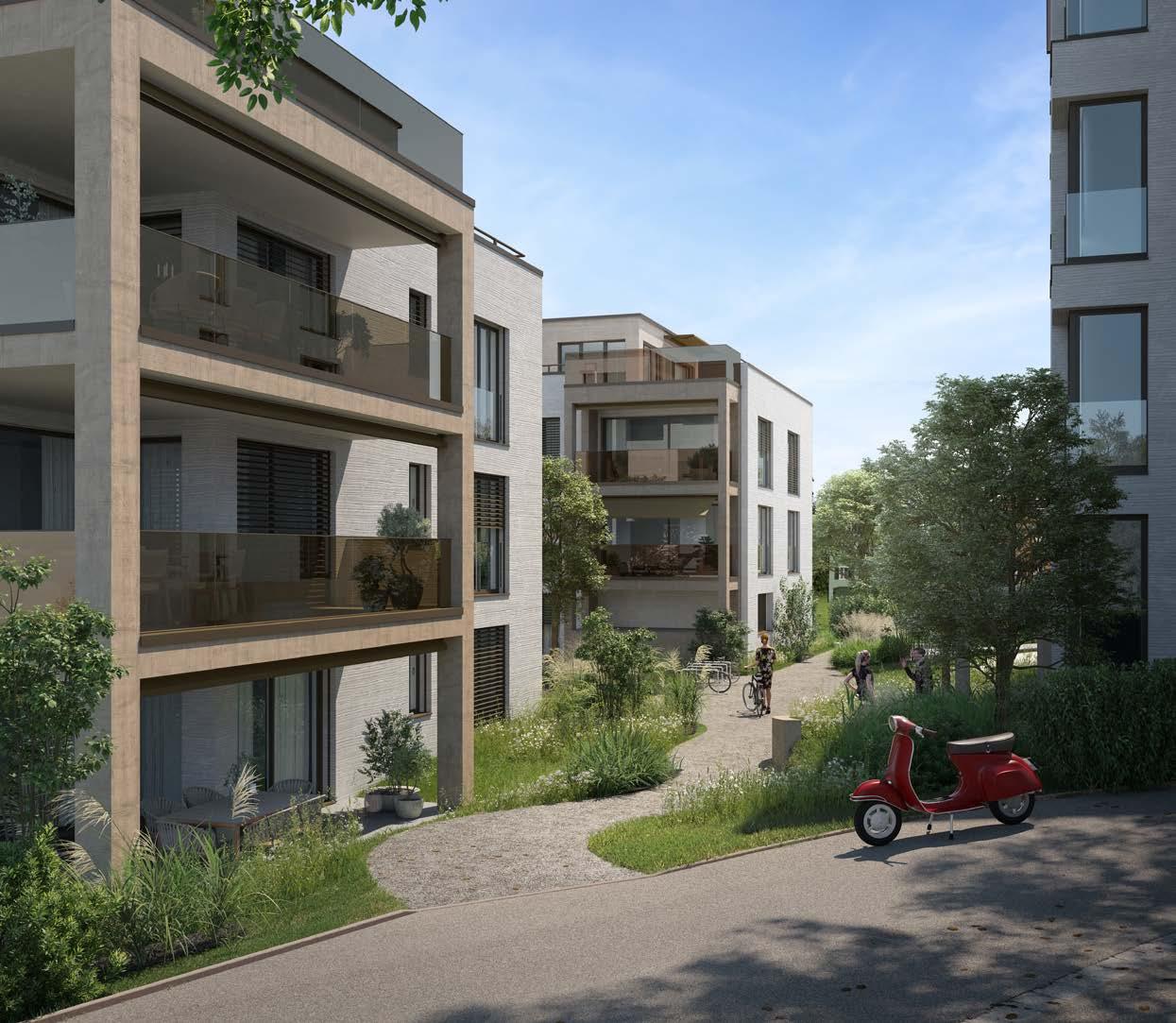 Die Überbauung ist äusserst familienfreundlich: Schulen und Kindergärten befinden sich in Gehdistanz. Aber auch Parks wie der beliebte Moosweiher mit Spielplatz, Einkaufsmöglichkeiten und Fitnesscenter sind in nächster Umgebung.