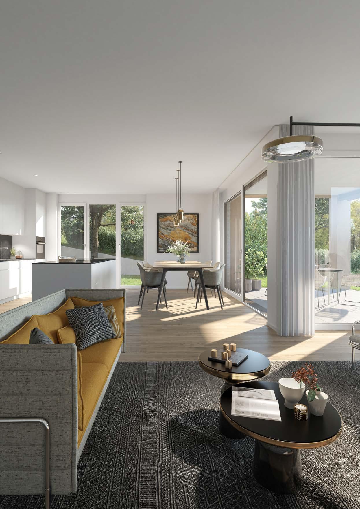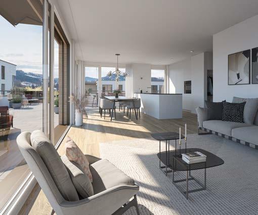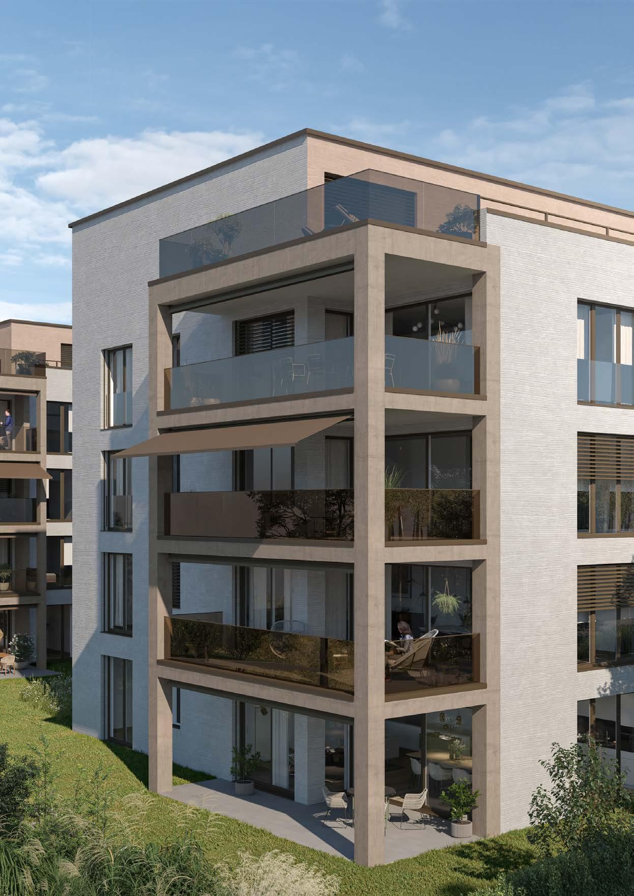 Der vorliegende Prospekt stellt das Bauvorhaben in der Projektphase dar. Aus sämtlichen Plänen, Zeichnungen, Darstellungen, Möblierungen, Visualisierungen sowie Beschreibungen können keinerlei Ansprüche abgeleitet werden. Insbesondere kommt den Plänen keine gesetzliche Wirkung von Grundbuchplänen zu. Für Ausführungen und Flächenangaben sind der detaillierte Baubeschrieb und die Pläne im Massstab 1:50 massgebend. Ausführungsbedingte Änderungen, Anpassungen und/oder Massabweichungen können vorkommen und bleiben jederzeit ausdrücklich vorbehalten.