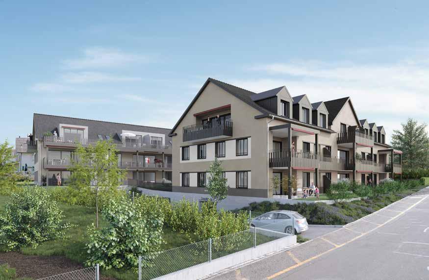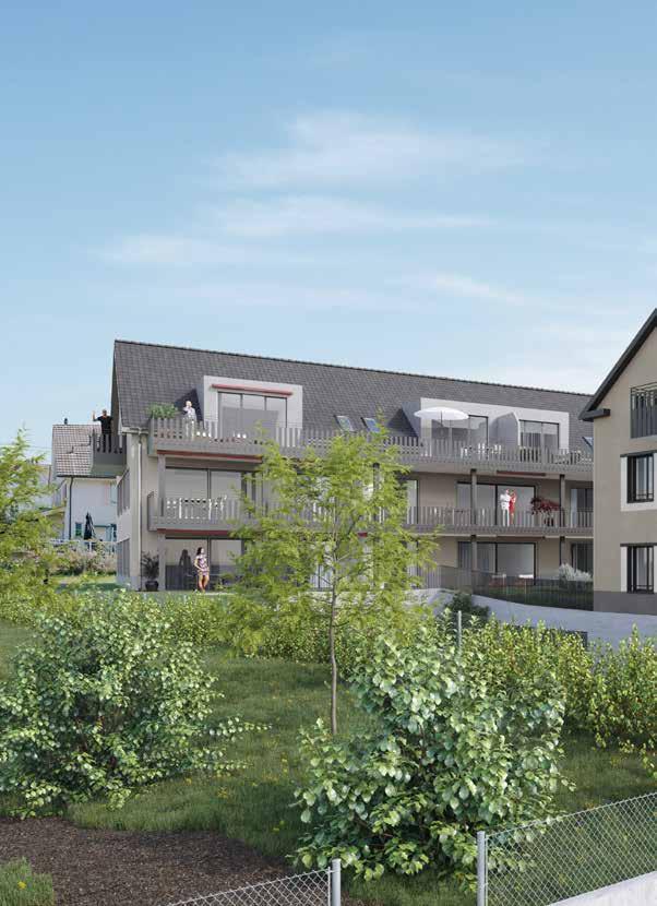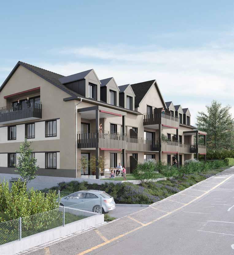 Der vorliegende Prospekt stellt das Bauvorhaben in der Projektphase dar. Aus sämtlichen Plänen, Zeichnungen, Darstellungen, Möblierungen, Visualisierungen sowie Beschreibungen können keinerlei Ansprüche abgeleitet werden. Insbesondere kommt den Plänen keine gesetzliche Wirkung von Grundbuchplänen zu. Für Ausführungen und Flächenangaben sind der detaillierte Baubeschrieb und die Pläne im Massstab 1:50 massgebend. Ausführungsbedingte Änderungen, Anpassungen und/oder Massabweichungen können vorkommen und bleiben jederzeit ausdrücklich vorbehalten.