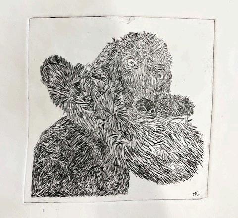 HannahisaJunioratThomasCollegewith amajorinBusinessAdministrationanda minorinMarketing.Shehashadalovefor artsinceshewaslittle.Herartworkinthis issueisaformofprintmakingcalled etching.Sheusedaphotoofherdog Winstonholdingthetoyduckthatheloves somuch.Inherfreetime,Hannahenjoys bringingherdogsforpupcups,thrifting, dancing,andfightingherrooster
