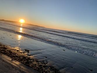 We spent our senior trip at the beach. We woke up and watched the sunrise over the ocean. We sat on that cool, hard stone, and we watched as the waves slowly rolled in. Little trails from the rocks created stretch marks over the beautiful coastline’s skin. The sun skated across as if each wave had been hand-built for where I sat. I remember the silence.