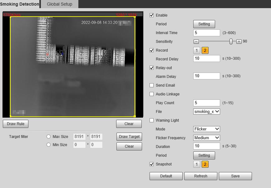 VI 5.3.1 Installation Requirements on Perimeter Protection ................................................................................... 56 5.3.1.1 Site Selection 56 5.3.1.2 Typical Scenes ..................................................................................................................................................... 56 5.3.1.3 Scene Confirmation 58 5.3.2 Configuration Flow ...................................................................................................................................................... 59 5.3.3 Configuring Smart Plan 59 5.3.4 Configuring Intelligent Rules ................................................................................................................................. 60 5.3.5 Configuring Global Setup ......................................................................................................................................... 62 5.4 Call Detection 63 5.4.1 Configuration Flow ...................................................................................................................................................... 64 5.4.2 Configure Smart Plan 64 5.4.3 Configure Call Detection ........................................................................................................................................... 64 5.4.4 Configuring Global Setup 65 5.5 Smoking Detection ................................................................................................................................................................. 66 5.5.1 Configuration Flow ...................................................................................................................................................... 66 5.5.2 Configure Smart Plan 66 5.5.3 Configure Smoking Detection ................................................................................................................................ 67 5.5.4 Configuring Global Setup 68 5.6 Configuring Heat Warning .................................................................................................................................................. 69 5.6.1 Configuring Heat Warning Rule 69 5.6.2 Configuring Smoke and Heat Detection Mode .............................................................................................. 70 5.7 Configuring Hot Trace ........................................................................................................................................................... 71 5.8 Configuring Pic in Pic 73 5.9 Configuring Thermal Map Acquisition ......................................................................................................................... 73 6 Setting 75 6.1 Configuring Camera ............................................................................................................................................................... 75 6.1.1 Configuring Camera Conditions 75 6.1.1.1 Configuring Visible Image ............................................................................................................................. 75 6.1.1.1.1 Configuring Picture Parameters ...................................................................................................... 75 6.1.1.1.2 Configuring Exposure Parameters ................................................................................................. 77 6.1.1.1.3 Configuring Backlight Parameters ................................................................................................. 79 6.1.1.1.4 Configuring White Balance Parameters 79 6.1.1.1.5 Configuring Day & Night Parameters ........................................................................................... 80 6.1.1.1.6 Configuring Defog Parameters 81 6.1.1.2 Configuring Thermal Image ......................................................................................................................... 82 6.1.1.3 Configuring Defective Pixel Correction .................................................................................................. 87 6.1.1.4 Configuring Profile Management.............................................................................................................. 88 6.1.2 Configuring Video Parameters .............................................................................................................................. 89