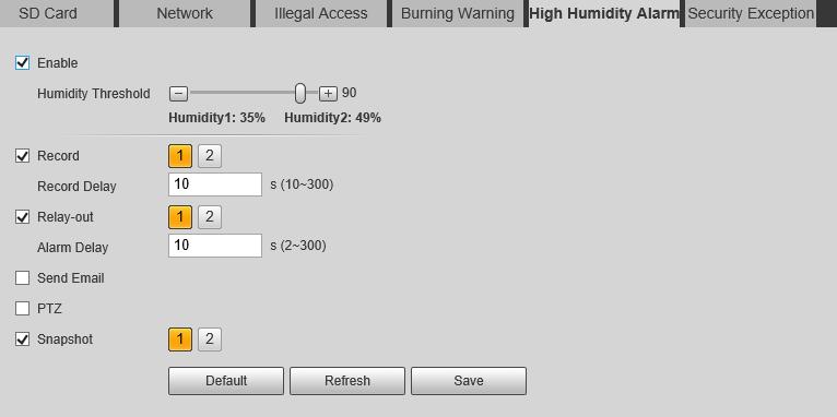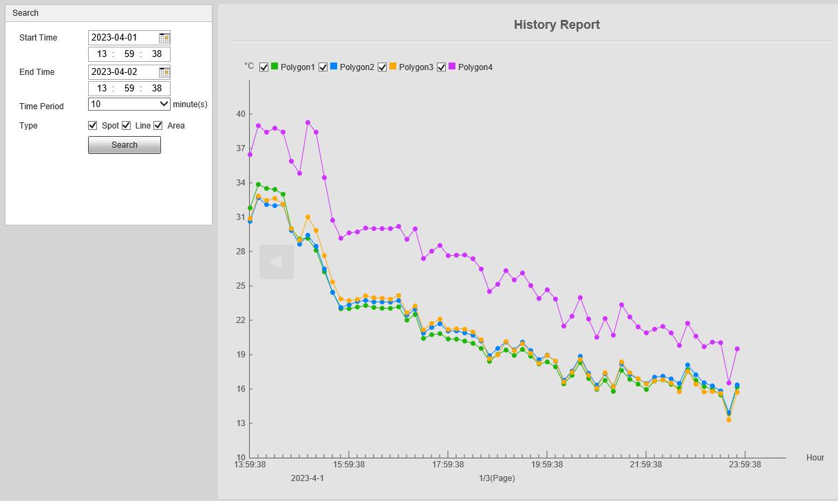 V 4.2.2.5 Configuring Pan.................................................................................................................................................. 23 4.2.2.6 Configuring PTZ Speed 23 4.2.2.7 Configuring Idle Motion ................................................................................................................................. 24 4.2.2.8 Configuring Power Up 25 4.2.2.9 Configuring Time Task .................................................................................................................................... 25 4.2.2.10 Restarting PTZ 26 4.2.2.11 Default .................................................................................................................................................................. 27 4.2.3 Calling PTZ ....................................................................................................................................................................... 28 4.2.3.1 PTZ Control 28 4.2.3.2 Joystick.................................................................................................................................................................... 29 4.2.3.3 PTZ Functions 29 4.3 Playback ....................................................................................................................................................................................... 30 4.3.1 Prerequisite 30 4.3.2 Playback Page ................................................................................................................................................................ 30 4.3.3 Playing back Video or Picture................................................................................................................................. 32 4.3.4 Clipping Video 33 4.3.5 Downloading Video or Picture ............................................................................................................................... 34 4.4 Reports 34 4.5 Alarm.............................................................................................................................................................................................. 35 4.5.1 Introduction to Alarm Types 35 4.5.2 Subscribing Alarm Information ............................................................................................................................. 36 5 AI function .............................................................................................................................................................................................. 38 5.1 Event 38 5.1.1 Alarm Linkage ................................................................................................................................................................ 38 5.1.2 Setting Period 40 5.1.3 Configuring Video Detection .................................................................................................................................. 41 5.1.3.1 Configuring Motion Detection 41 5.1.3.2 Configuring Video Tampering .................................................................................................................... 43 5.1.4 Configuring Audio Detection ................................................................................................................................. 43 5.1.5 Configuring Temperature Alarm .......................................................................................................................... 45 5.1.6 Configuring Abnormality ......................................................................................................................................... 46 5.1.6.1 Configuring SD Card Abnormality 46 5.1.6.2 Configuring Network Abnormality ........................................................................................................... 46 5.1.6.3 Configuring Illegal Access 47 5.1.6.4 Configuring Burning Warning ..................................................................................................................... 47 5.1.6.5 Configuring High Humidity Alarm ............................................................................................................ 48 5.1.6.6 Configuring Security Exception.................................................................................................................. 48 5.2 Temperature Measurement ............................................................................................................................................... 49